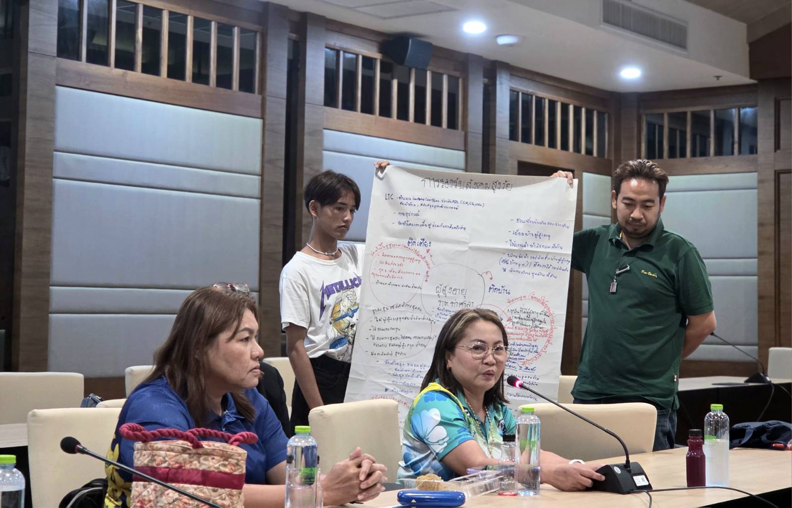 🔵 นางสาวพฤกษา สินลือนาม ผู้แทนสำนักงานคณะกรรมการสุขภาพแห่งชาติ ได้จัดกระบวนการชวนคิด - ชวนคุย เพื่อให้ทั้ง 5 พื้นที่ได้ทบทวนสถานการณ์สูงวัยในพื้นที่ วิเคราะห์ภาคีเครือข่ายที่เกี่ยวข้องกับการรองรับสังคมสูงวัย และร่วมกำหนดภาพพึงประสงค์ประเด็นการรองรับสังคมสูงวัย ที่จะนำไปสู่การเริ่มต้นทำธรรมนูญสุขภาพของแต่ละพื้นที่ต่อ