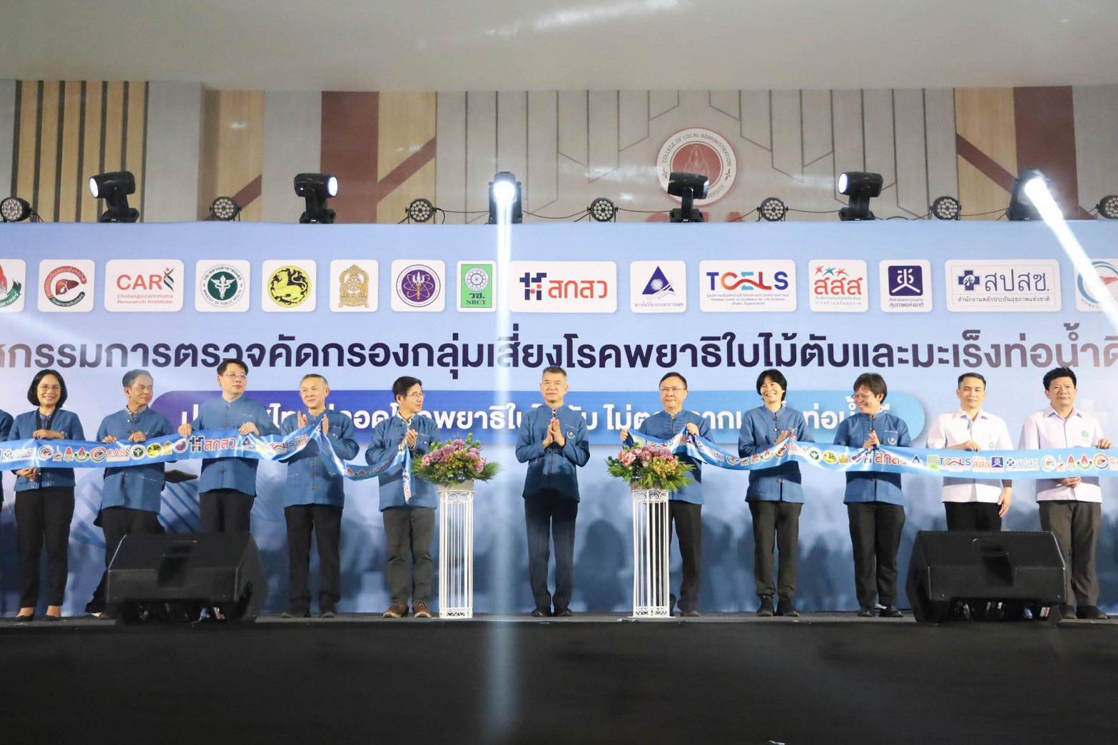 สถาบันวิจัยระบบสาธารณสุข (สวรส.) สถาบันวิจัยมะเร็งท่อน้ำดี มหาวิทยาลัยขอนแก่น และศูนย์ความเป็นเลิศทางการแพทย์มะเร็งท่อน้ำดี โรงพยาบาลศรีนครินทร์ ร่วมกับสำนักงานคณะกรรมการส่งเสริมวิทยาศาสตร์ วิจัยและนวัตกรรม (สกสว.) สำนักงานการวิจัยแห่งชาติ (วช.) ศูนย์ความเป็นเลิศด้านชีววิทยาศาสตร์ (องค์การมหาชน) (TCELS) และภาคีเครือข่าย ทั้งจากกระทรวงสาธารณสุข กระทรวงศึกษาธิการ และกระทรวงมหาดไทย สำนักงานหลักประกันสุขภาพแห่งชาติ (สปสช.) สำนักงานคณะกรรมการสุขภาพแห่งชาติ (สช.) สำนักงานกองทุนสนับสนุนการสร้างเสริมสุขภาพ (สสส.) Kick off กิจกรรมครั้งสำคัญของประเทศ “มหกรรมการตรวจคัดกรองกลุ่มเสี่ยงโรคพยาธิใบไม้ตับและมะเร็งท่อน้ำดี “ประเทศไทยปลอดโรคพยาธิใบไม้ตับ ไม่ตายจากมะเร็งท่อน้ำดี” เพื่อกระตุ้นให้ประชาชนตระหนักถึงความสำคัญของปัญหา ตลอดจนการรู้จักป้องกันตนเอง ครอบครัว ชุมชน และสังคมให้ปลอดภัยจากโรคพยาธิใบไม้ตับ และมะเร็งท่อน้ำดี ตลอดจนเพื่อเผยแพร่ความรู้ในการป้องกันโรค อาหารปลอดภัย การปรับเปลี่ยนพฤติกรรมการบริโภค และการส่งเสริมสุขภาพที่เกี่ยวข้องกับพยาธิใบไม้ตับและมะเร็งท่อน้ำดี ทั้งในกลุ่มเสี่ยงและประชาชนทั่วไป