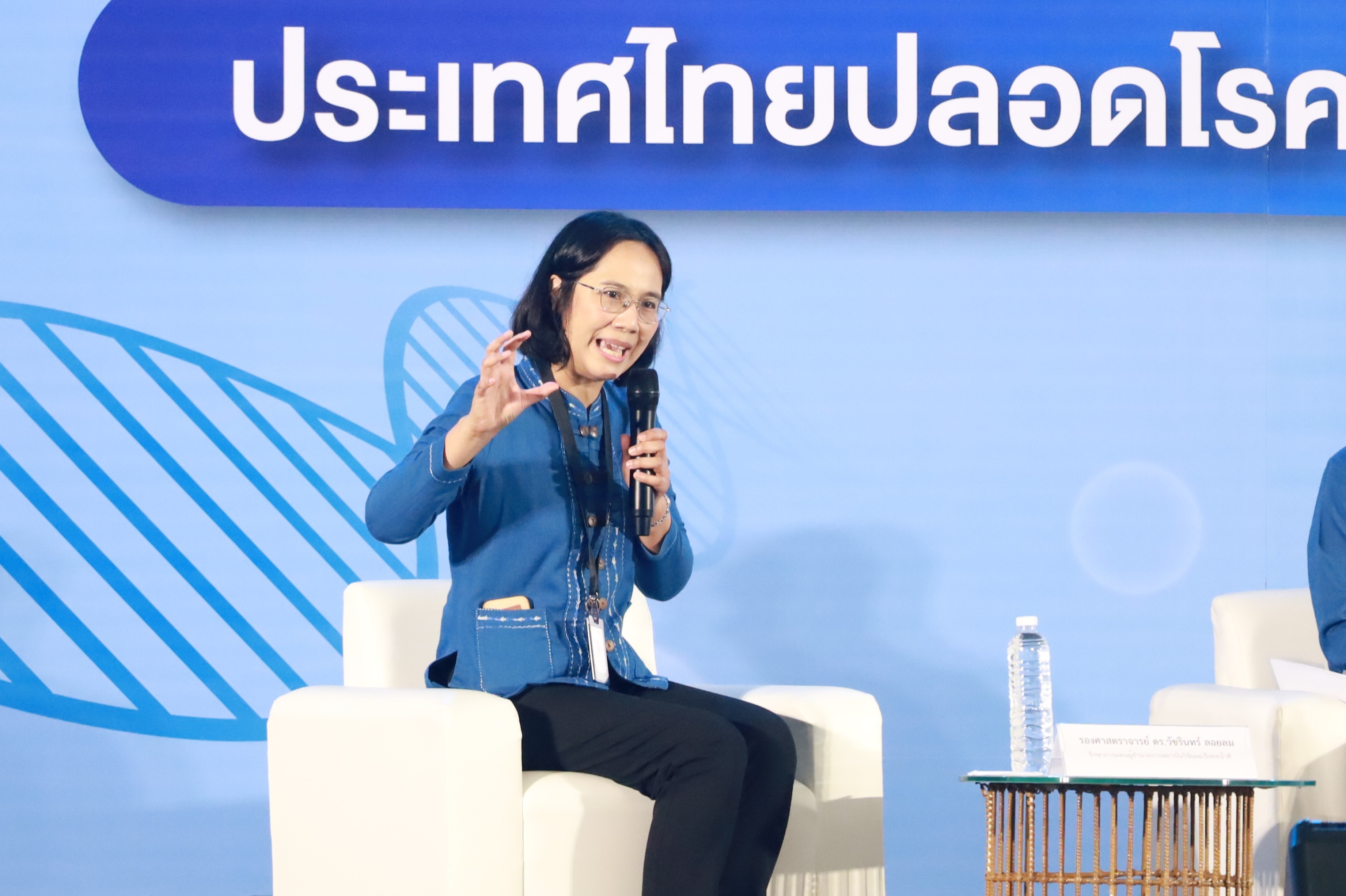 นพ.ศุภกิจ ศิริลักษณ์ ผู้อำนวยการสถาบันวิจัยระบบสาธารณสุข และกรรมการบริหาร สำนักงานคณะกรรมการสุขภาพแห่งชาติ กล่าวว่า การสนับสนุนงบประมาณวิจัยภายใต้งบประมาณของกองทุนส่งเสริมวิทยาศาสตร์ วิจัยและนวัตกรรม (ววน.) เน้นการสนับสนุนทุนวิจัยแบบมุ่งเป้า โดยหยิบยกประเด็นที่เป็นปัญหาสำคัญของประเทศ และมีแนวโน้มที่จะแก้ไขได้มาเร่งดำเนินการ ซึ่งถึงเวลาแล้วที่ทุกภาคส่วนต้องมาร่วมมือกันในการแก้ปัญหาโรคพยาธิใบไม้ตับและมะเร็งท่อน้ำดีให้เกิดเป็นรูปธรรมที่ชัดเจน โดยจุดคานงัดสำคัญของปัญหาดังกล่าว คือพฤติกรรมการบริโภคและการคัดกรองกลุ่มเสี่ยงให้เข้ารับการรักษาได้อย่างรวดเร็ว ทั้งนี้ สวรส. ในฐานะที่เป็นหน่วยงานบริหารและจัดการทุนวิจัย (Program Management Unit: PMU) หลัก ในการขับเคลื่อนเพื่อให้ประเทศไทยปลอดโรคพยาธิใบไม้ตับและลดอัตราการเสียชีวิตจากมะเร็งท่อน้ำดี ตั้งเป้าหมายการขับเคลื่อนเพื่อนำไปสู่การลดความชุกของการเกิดโรคพยาธิใบไม้ตับ ภายใน 2 ปี ให้ได้น้อยกว่า 10% และภายใน 10 ปี น้อยกว่า 1% และสามารถวินิจฉัยโรคมะเร็งท่อน้ำดีได้ตั้งแต่ระยะต้น ภายใน 2 ปี ได้มากกว่า 50% ภายใน 10 ปี ได้มากกว่า 80% โดยจะลดอัตราการเสียชีวิตจากโรคมะเร็งท่อน้ำดี ภายใน 2 ปี ได้มากกว่า 30% ภายใน 10 ปี ได้ 50% สำหรับความร่วมมือกันในครั้งนี้ เราจะช่วยกันผลักดันให้เกิดความปลอดภัย ตั้งแต่เรื่องสุขาภิบาลสิ่งแวดล้อม พฤติกรรมการบริโภคที่ถูกต้อง เพื่อลดการบริโภคปลาดิบที่มีพยาธิใบไม้ตับ การคัดกรองเพื่อให้คนที่มีความเสี่ยงที่จะเป็นโรคมะเร็งท่อน้ำดี สามารถถูกค้นพบได้เร็วขึ้น ไม่ว่าจะเป็นการตรวจอัลตร้าซาวด์ การตรวจ CT Scan การเพิ่มขีดความสามารถในการผ่าตัดให้ได้มากขึ้น ไม่ต้องรอคิวนาน การพัฒนาระบบฐานข้อมูลติดตามและเฝ้าระวังผู้ป่วยโรคพยาธิใบไม้ตับและมะเร็งท่อน้ำดี รวมถึงการขยายการผลิตชุดตรวจคัดกรองให้สามารถเข้าถึงและครอบคลุมกลุ่มเป้าหมายมากขึ้น ซึ่งเราจะทุ่มเทกันทุกภาคส่วน เพื่อดำเนินการให้เห็นผลและบรรลุเป้าหมายที่ตั้งไว้ภายในเวลา 2 ปีต่อจากนี้