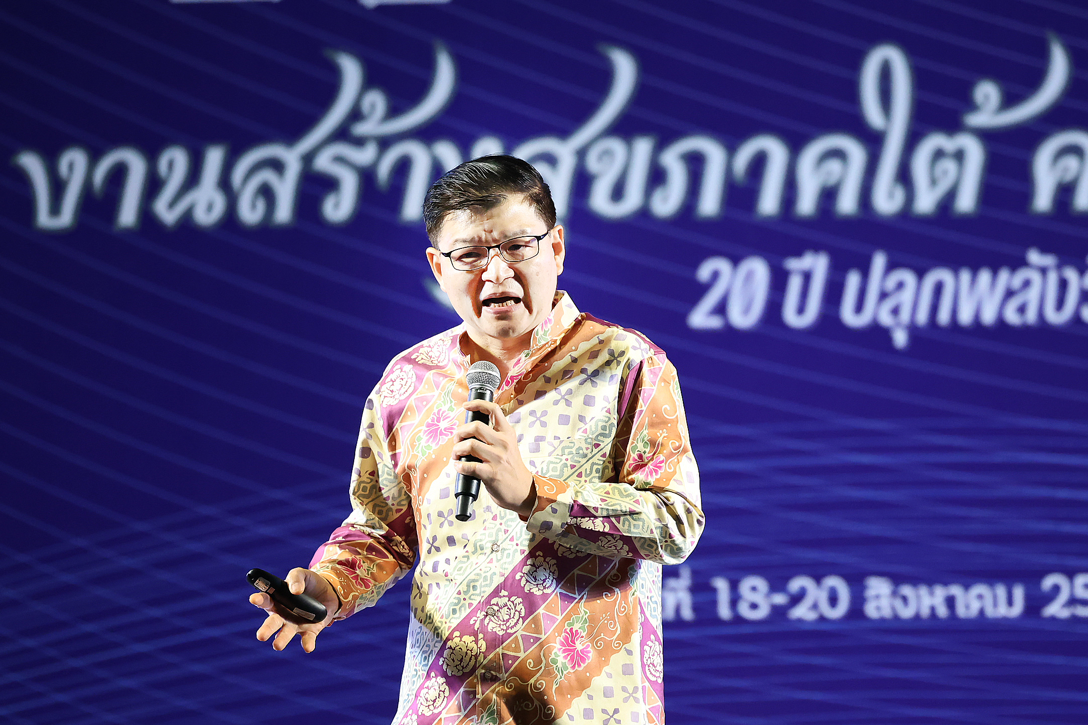 นพ.พงศ์เทพ วงศ์วัชรไพบูลย์ ผู้จัดการสำนักงานกองทุนสนับสนุนการสร้างเสริมสุขภาพ กล่าวว่า 20 ปี ในการขับเคลื่อนงานนโยบายสาธารณะในภาคใต้เพื่อความสุขของคนใต้ โดยอาศัยพลังวิถีถิ่นใต้ ในการเป็นพลังเพื่อไปสู่สุขภาวะแห่งอนาคต แม้ว่าวันนี้เราจะมีสุขแล้ว แต่เราจะอยากให้สุขนั้นเผื่อแผ่ไปกับคนที่มากขึ้นในภาคใต้ และใช้พลังของคนใต้ที่มีพหุวัฒนธรรมในการขับเคลื่อนร่วมกัน ทั้งเรื่องความมั่นคงทางอาหาร, ความมั่นคงทางสุขภาพ, ความมั่นคงทางมนุษย์ และความมั่นคงทางทรัพยากรธรรมชาติและสิ่งแวดล้อม