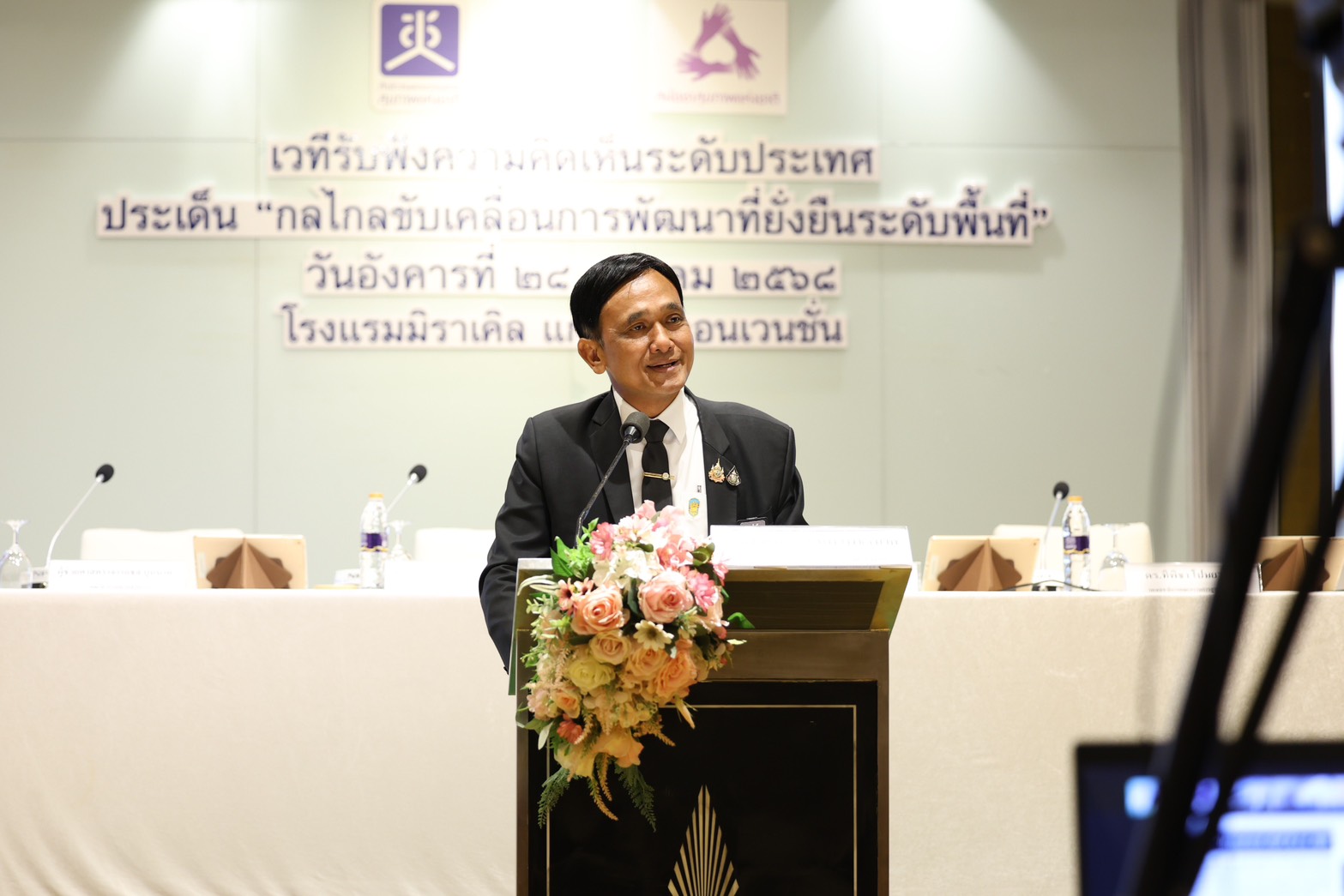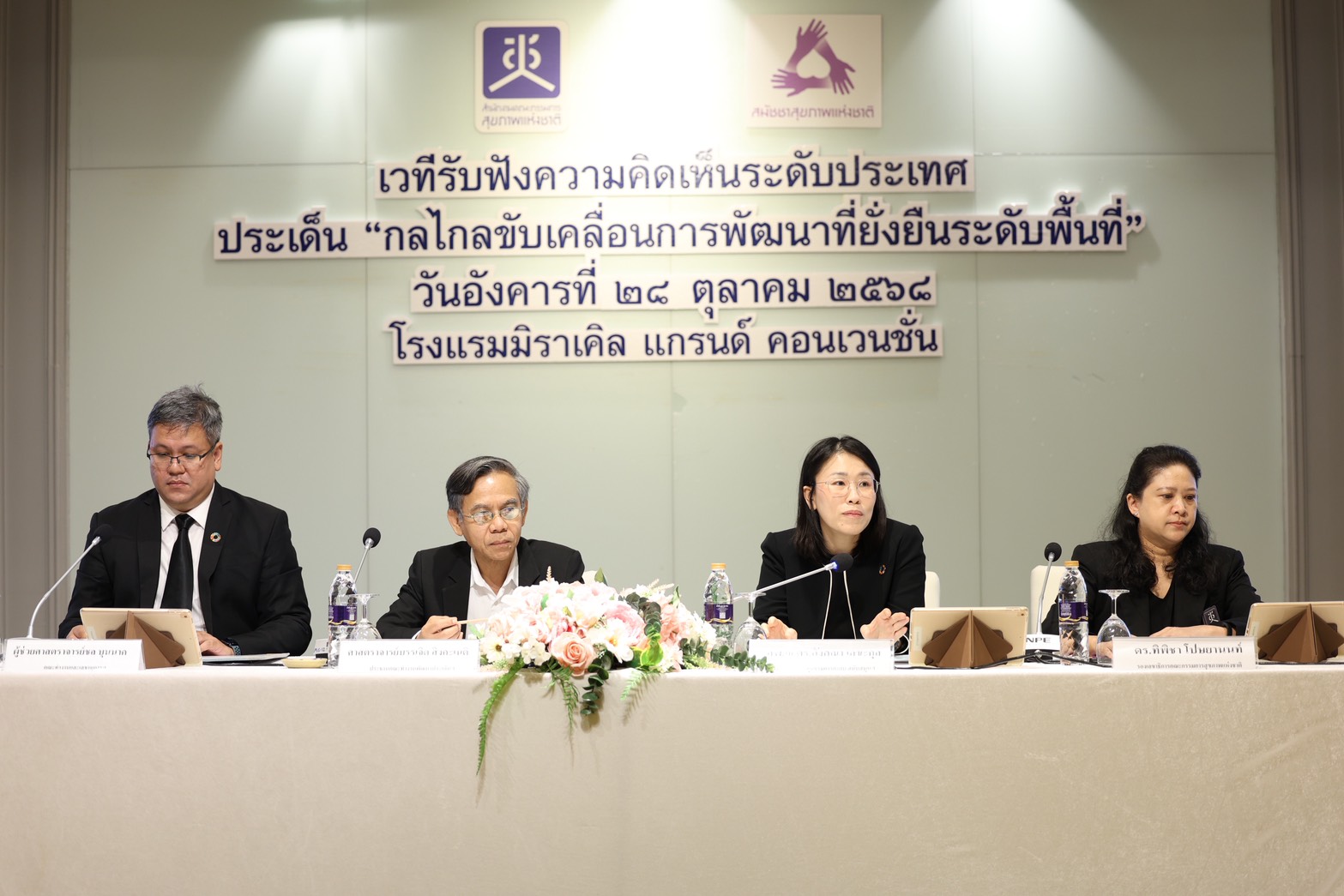 สำนักงานคณะกรรมการสุขภาพแห่งชาติ (สช.) ร่วมกับหน่วยงานภาคีเครือข่าย จัดเวทีรับฟังความคิดเห็นระดับประเทศ ประเด็น “กลไกขับเคลื่อนการพัฒนาที่ยั่งยืนระดับพื้นที่” เมื่อวันที่ 28 ต.ค. 2568 ซึ่งเป็นหนึ่งในข้อเสนอเชิงนโยบายที่อยู่ระหว่างการพัฒนาเพื่อบรรจุเป็นระเบียบวาระในงาน สมัชชาสุขภาพแห่งชาติ ครั้งที่ 18 พ.ศ. 2568 โดยมีผู้แทนจากภาคส่วนที่เกี่ยวข้อง ทั้งหน่วยงานภาครัฐ ภาควิชาการ ภาคประชาสังคมทั่วประเทศ เข้าร่วมกว่า 400 คน ทั้งในสถานที่ประชุม ณ โรงแรมมิราเคิล แกรนด์ คอนเวนชั่น และทางออนไลน์