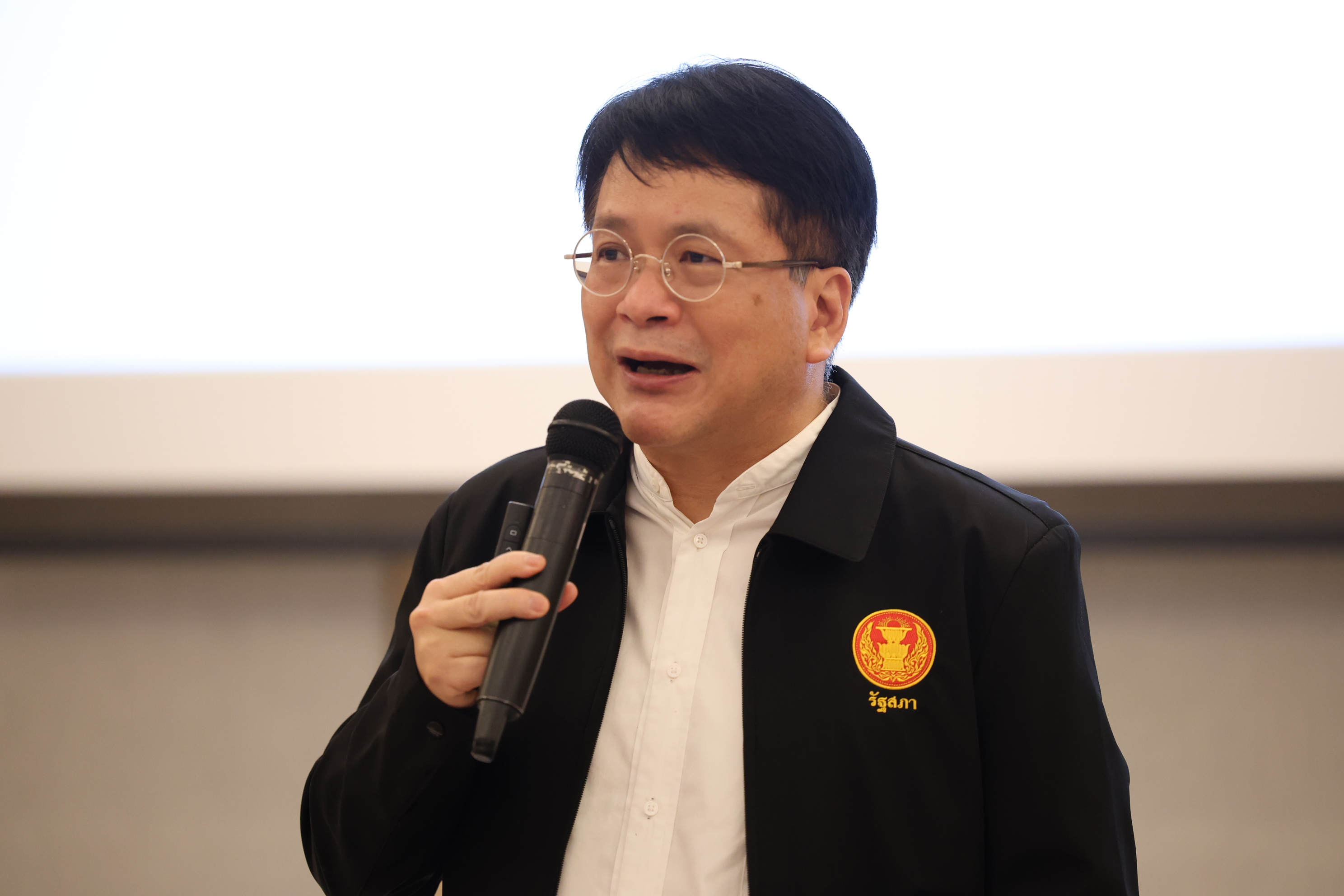 ขณะเดียวกัน ดร. เดชรัต สุขกำเนิด ผู้อำนวยการ Think Forward Center ได้บรรยายหัวข้อ “วิกฤติสังคมไทยในโลกที่ผันผวน” โดยวิเคราะห์สถานการณ์ “3 วิกฤตโลกปี 2568” ที่ประเทศไทยกำลังเผชิญ ได้แก่ วิกฤตเศรษฐกิจ วิกฤตสังคม และวิกฤตทรัพยากร พร้อมชี้ให้เห็นแนวโน้มความไม่แน่นอนของโลกและการกลับทิศทางของโลกาภิวัตน์ ซึ่งส่งผลต่อเศรษฐกิจและสังคมไทย ทั้งการขาดดุลการค้าพืชผัก การเพิ่มขึ้นของอัตราภาษีนำเข้า และความเหลื่อมล้ำที่ขยายตัวในหลายมิติ ดร. เดชรัต เสนอให้ “การลงทุนในมนุษย์” เป็นศูนย์กลางของนโยบาย ผ่านการพัฒนาระบบดูแลผู้สูงอายุ ศูนย์เด็กเล็ก และระบบสวัสดิการถ้วนหน้า เพื่อเพิ่มขีดความสามารถของประเทศในระยะยาว