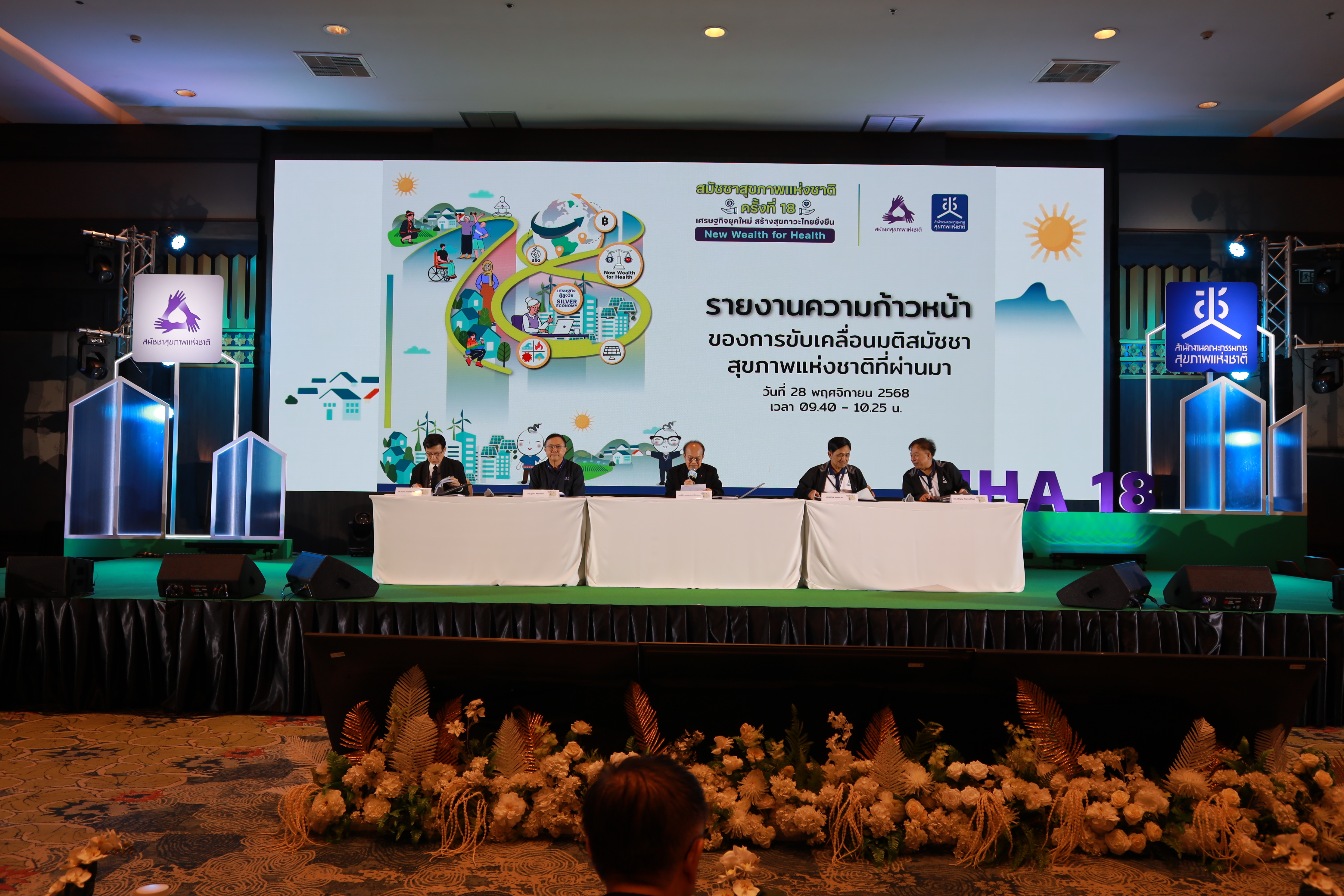เมื่อวันที่ 28 พ.ย. 2568 เป็นวันที่สองของการประชุมสมัชชาสุขภาพแห่งชาติ ครั้งที่ 18 พ.ศ. 2568 ที่สำนักงานคณะกรรมการสุขภาพแห่งชาติ (สช.) ร่วมกับภาคีเครือข่ายยุทธศาสตร์จัดขึ้น ระหว่างวันที่ 27-28 พ.ย. 2568 ณ อาคารอิมแพ็ค ฟอรั่ม เมืองทองธานี ภายใต้ประเด็นหลัก “เศรษฐกิจยุคใหม่ สร้างสุขภาวะไทยยั่งยืน” (New Wealth for Health) ได้มีการรายงานความก้าวหน้าของการขับเคลื่อนมติสมัชชาสุขภาพแห่งชาติที่ผ่านมา พร้อมทั้งการกล่าวชื่นชมกลุ่มมติที่มีการขับเคลื่อนอย่างต่อเนื่อง
