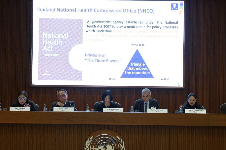 วันที่ 3 ธันวาคม 2568 ดร.ทิพิชา โปษยานนท์ รองเลขาธิการคณะกรรมการสุขภาพแห่งชาติ นางอุรีรัชต์ เจริญโต ที่ปรึกษาอาวุโส สำนักงานคณะกรรมการสุขภาพแห่งชาติ (สช.) และคณะ ร่วมประชุมการประชุมผู้อำนวยการใหญ่เอเชียแปซิฟิกด้านความร่วมมือใต้–ใต้และไตรภาคี ครั้งที่ 7 : “เสริมพลังความร่วมมือใต้–ใต้เพื่อสังคมที่ครอบคลุมในภูมิภาคเอเชียและแปซิฟิก” ( The Seventh Asia-Pacific Directors General Forum for South-South and Triangular Cooperation: “Harnessing South-South Cooperation for Inclusive Societies in Asia and the Pacific” ) ณ องค์การสหประชาชาติ กรุงเทพมหานคร ประเทศไทย