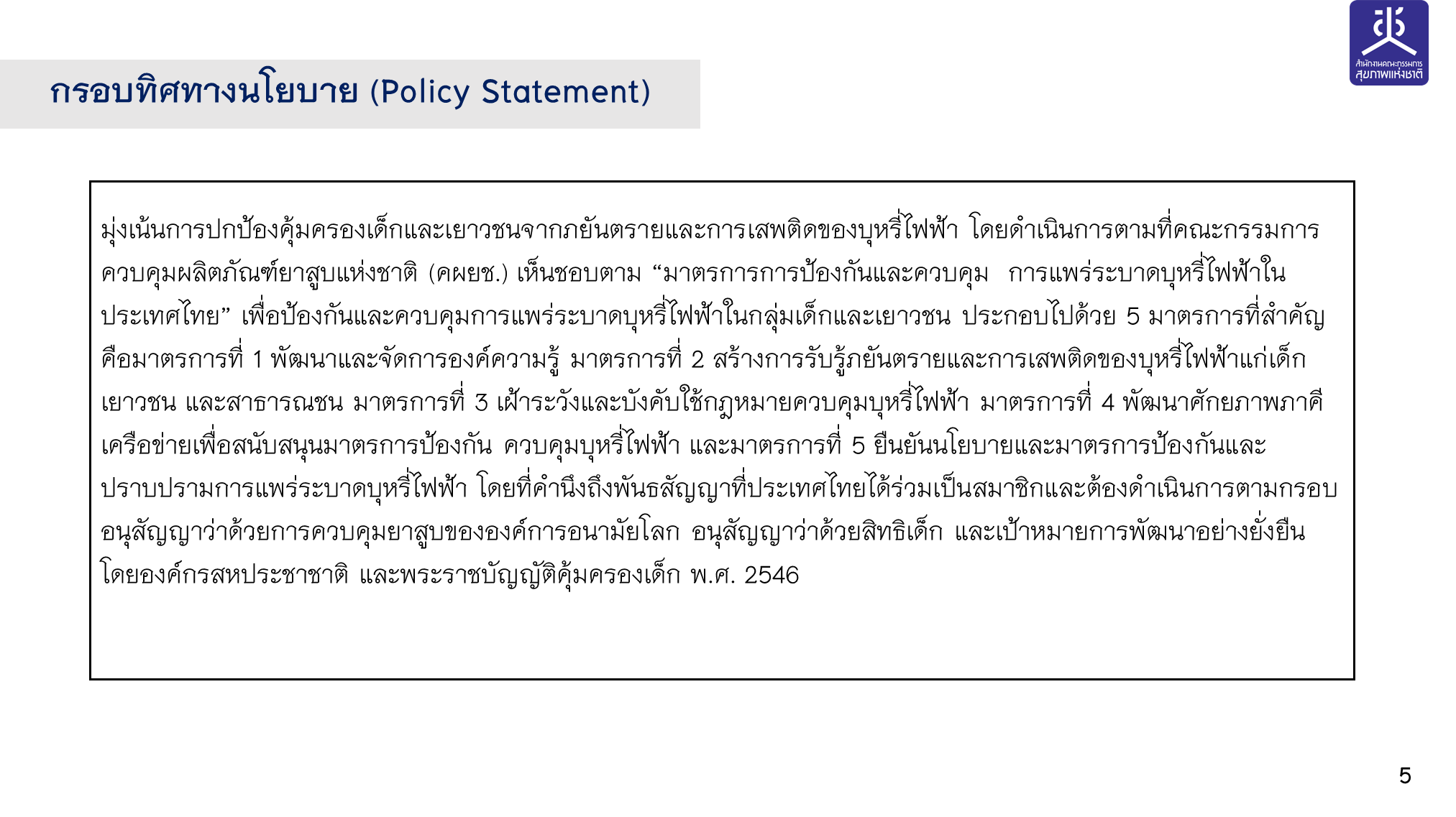 กรอบทิศทางนโยบาย (Policy Statement) สมัชชาสุขภาพเฉพาะประเด็นการปกป้องเด็กและเยาวชนจากบุหรี่ไฟฟ้า