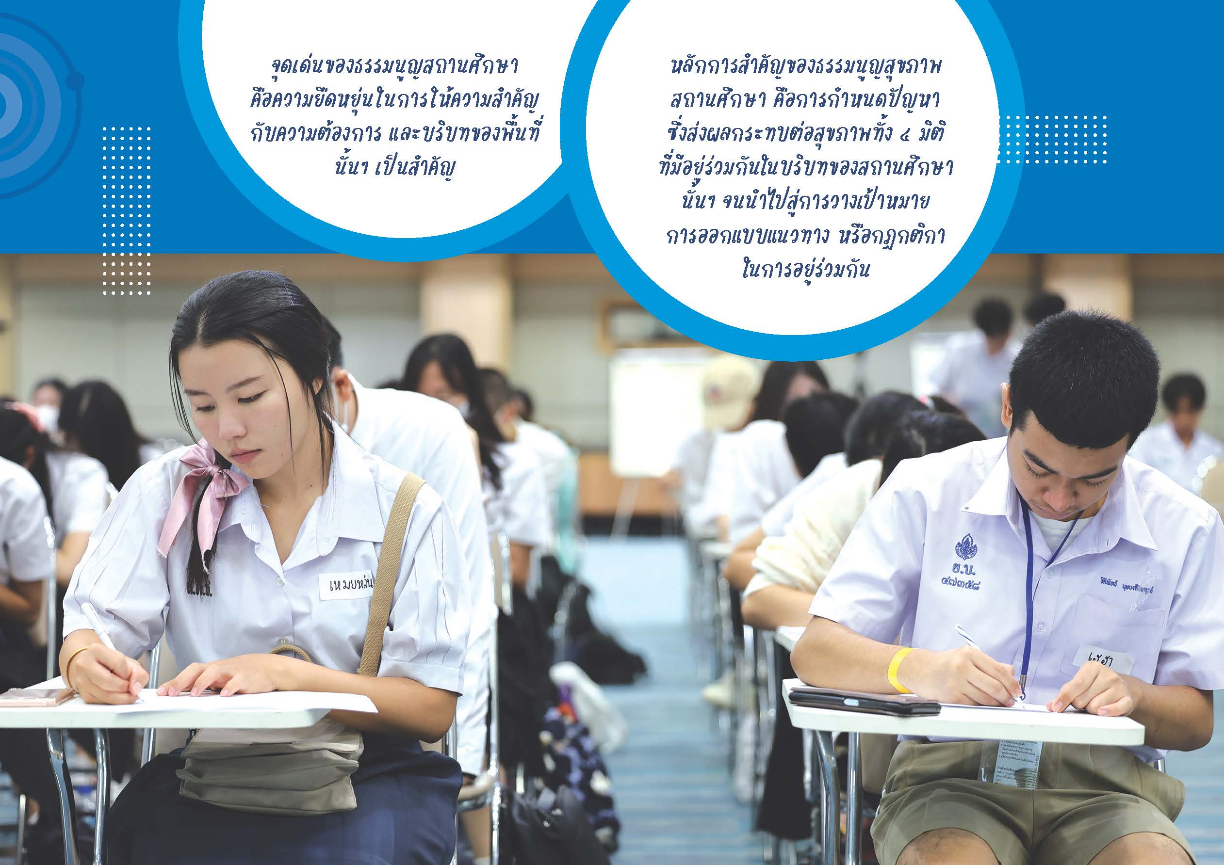 ไม่มากก็น้อย เชื่อว่าหน่วยงานอย่าง สำนักงานคณะกรรมการสุขภาพแห่งชาติ (สช.) ในฐานะองค์กรที่มีบทบาทในการส่งเสริมและดูแลสุขภาพที่ครอบคลุมทั้ง 4 มิติ ได้แก่ กาย ใจ สังคม ปัญญา เล็งเห็นถึงสถานการณ์ของปัญหาที่ไล่เรียงมาข้างต้น จึงนำเครื่องมือภายใต้ พ.ร.บ.สุขภาพแห่งชาติ พ.ศ. 2550 เข้ามาประยุกต์ใช้เพื่อสร้างกระบวนการการมีส่วนร่วมสนับสนุนการทำงานของสถานศึกษา