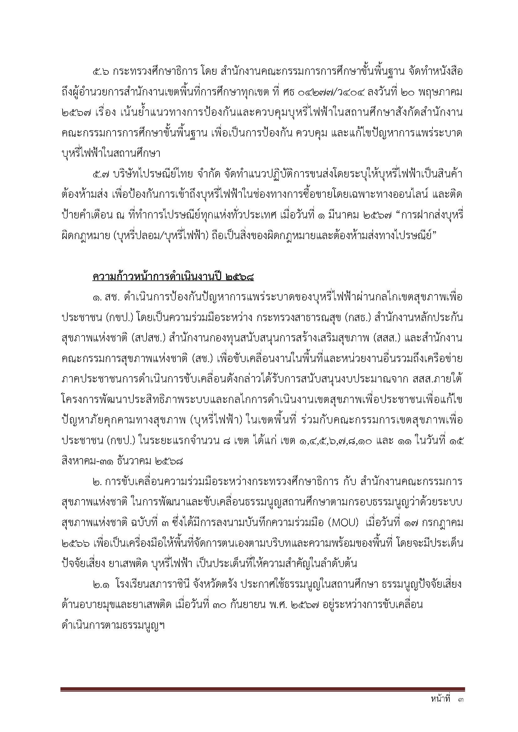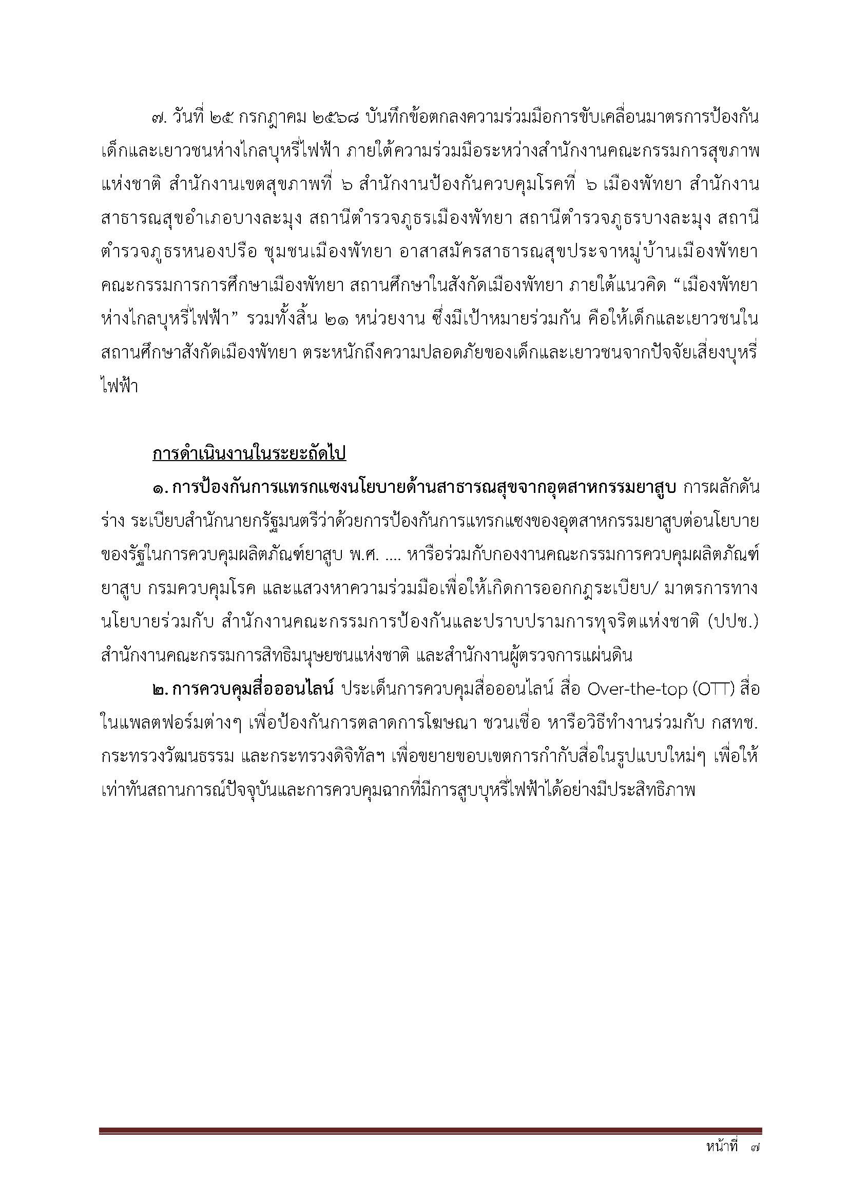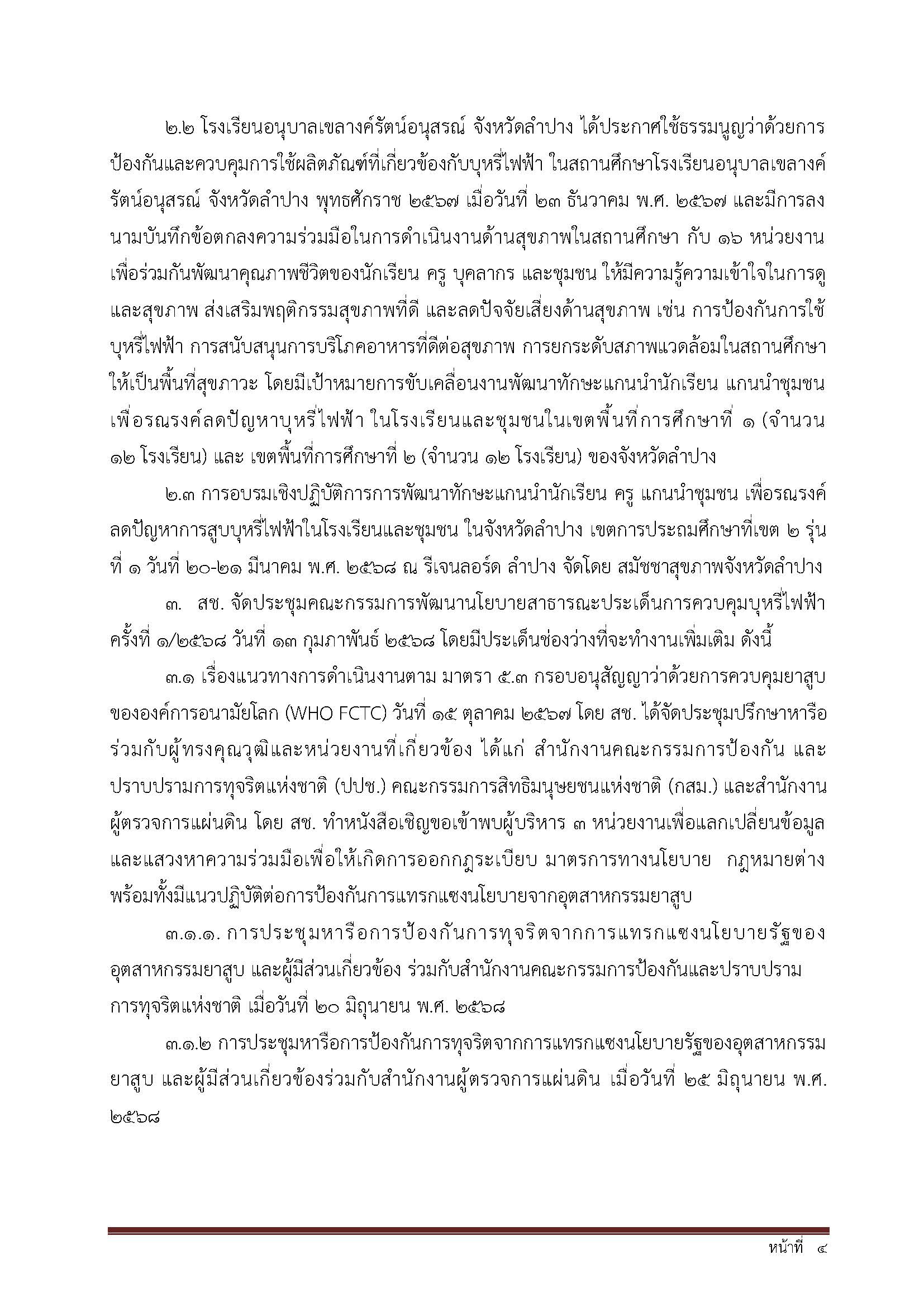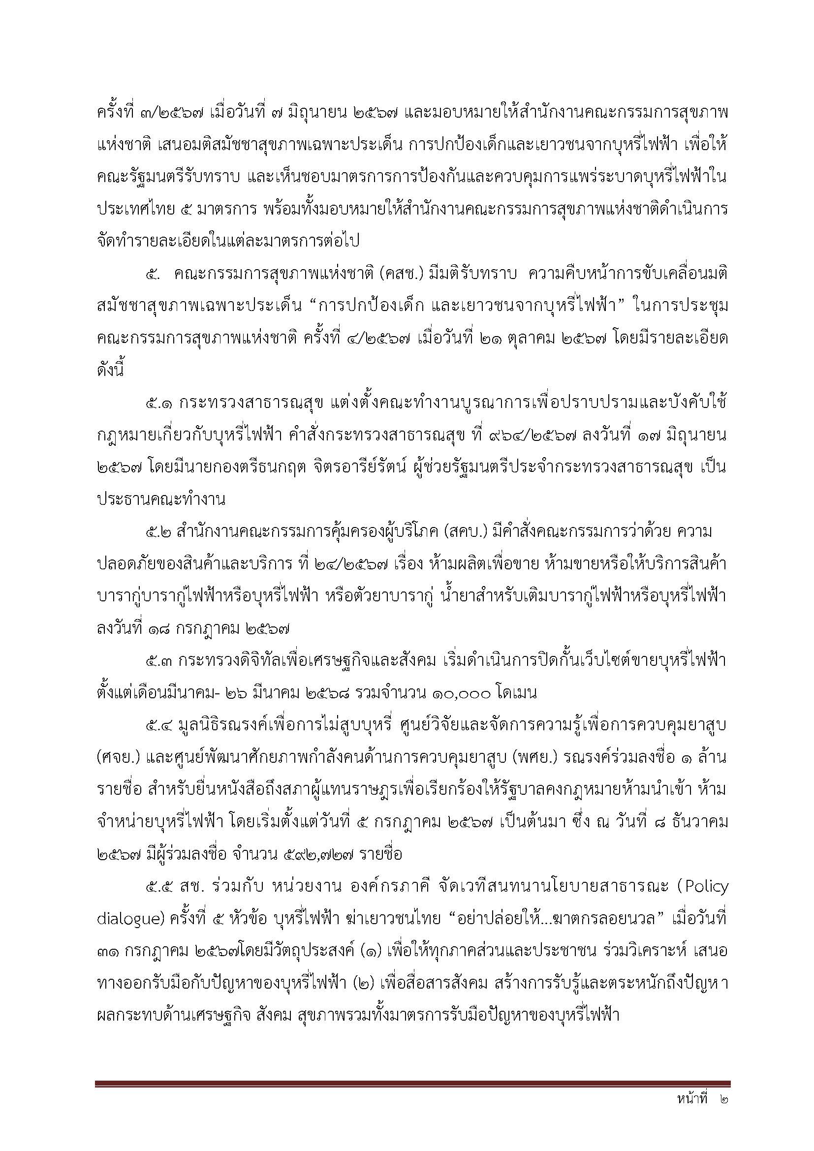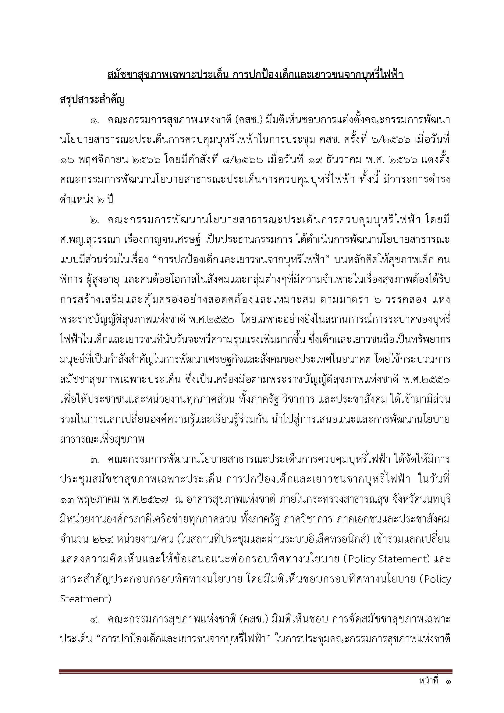 ความก้วหน้า สมัชชาสุขภาพเฉพาะประเด็น การปกป้องเด็กและเยาวชนจากบุหรี่ไฟฟ้า