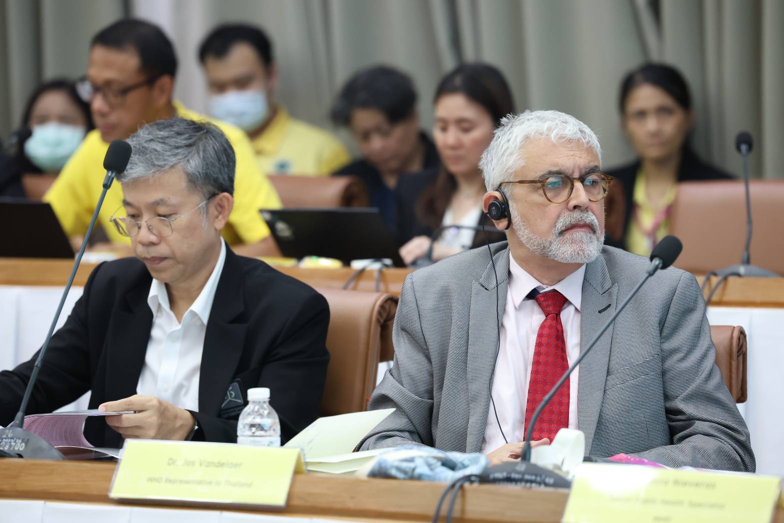 ดร. Jos Vandelaer ผู้แทนองค์การอนามัยโลก (WHO) ประจำประเทศไทย กล่าวสนับสนุนแนวทาง “Multi-sectoral Actions” ของไทย พร้อมย้ำความสำคัญของนโยบายข้ามกระทรวง เช่น