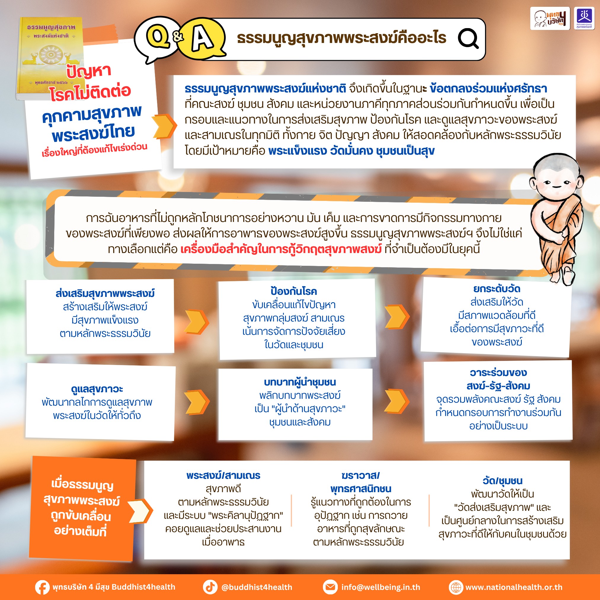 ขอเชิญชวนทุกท่านตระหนัก ถึงเครื่องมือสำคัญที่จะช่วยส่งเสริม ป้องกัน และ ดูแลสุขภาวะของพระสงฆ์ไทยอย่างเป็นระบบ เพื่อ พระแข็งแรง วัดมั่นคง ชุมชนเป็นสุข