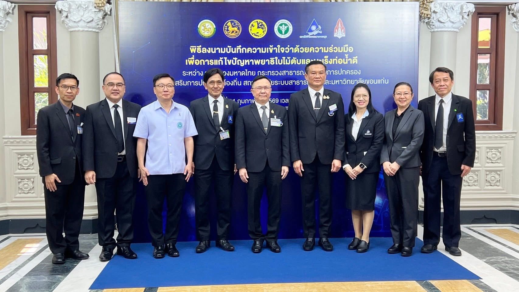วันนี้ (11 กุมภาพันธ์ 2569) เวลา 13.30 ณ ตึกสันติไมตรี (หลังใน) ทำเนียบรัฐบาล นายอนุทิน ชาญวีรกูล นายกรัฐมนตรีและรัฐมนตรีว่าการกระทรวงมหาดไทยเป็นประธานและร่วมเป็นสักขีพยานในพิธีลงนามบันทึกความเข้าใจว่าด้วยความร่วมมือเพื่อการแก้ไขปัญหาพยาธิใบไม้ตับและมะเร็งท่อน้ำดี โดยมี นายอรรษิษฐ์ สัมพันธรัตน์ ปลัดกระทรวงมหาดไทย นายแพทย์สมฤกษ์ จึงสมาน ปลัดกระทรวงสาธารณสุข นายแพทย์ศุภกิจ ศิริลักษณ์ ผู้อำนวยการสถาบันวิจัยระบบสาธารณสุข คณะผู้บริหารกระทรวงมหาดไทย คณะผู้บริหารกระทรวงสาธารณสุข ผู้บริหารมหาวิทยาลัยขอนแก่น และเจ้าหน้าที่ที่เกี่ยวข้องเข้าร่วมงาน