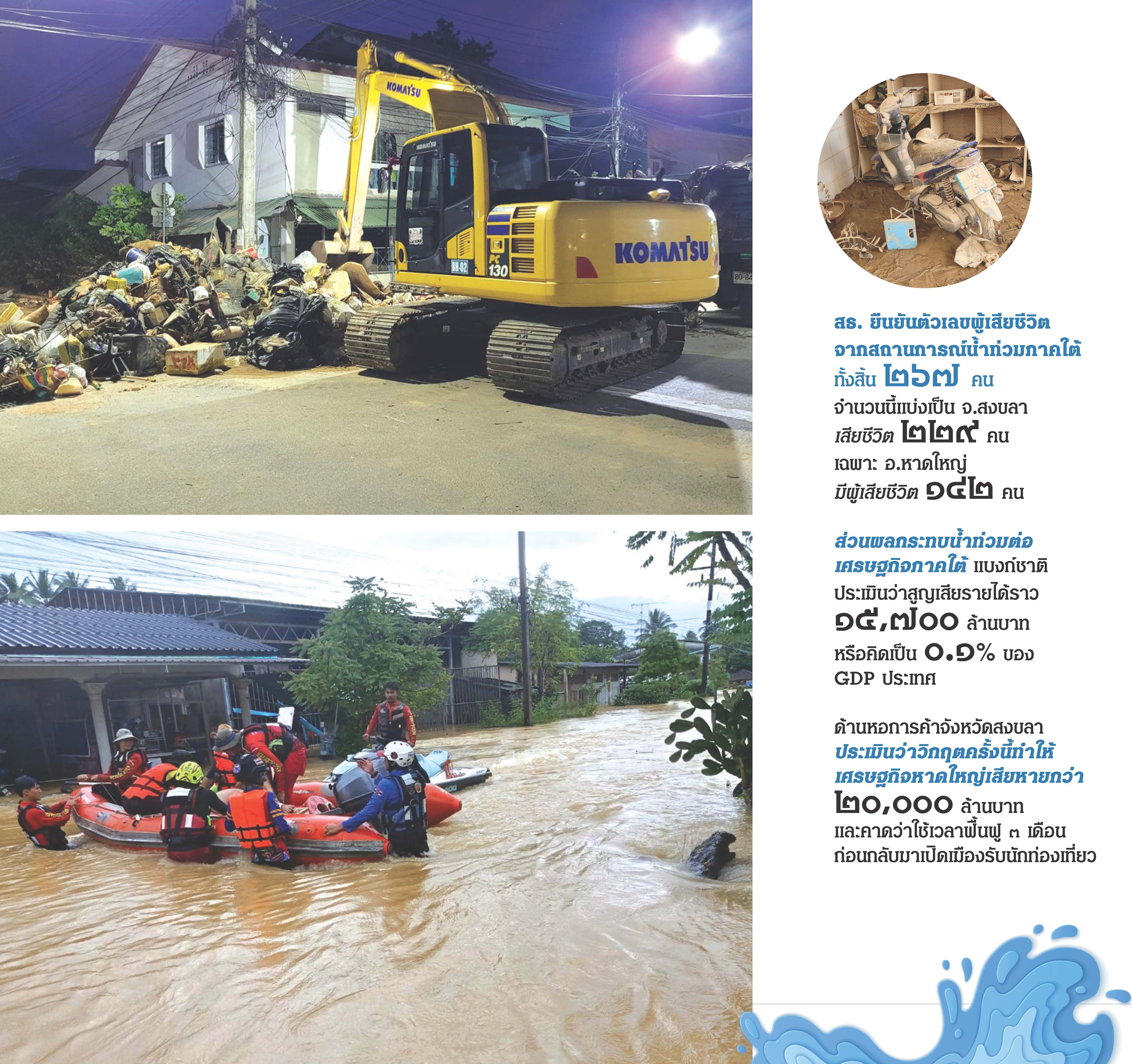 ผ่านพ้นไปเพียงไม่นานในช่วงกลางเดือน พ.ย. ปัจจัยอิทธิพลร่องมรสุมจากสภาวะลานีญา และฝนตกที่สะสม ได้ทำให้เกิดน้ำท่วมหนักครอบคลุม ๙ จังหวัดภาคใต้ รวมถึง จ.สงขลา ถูกน้ำท่วมทั้ง ๑๖ อำเภอ โดยเฉพาะ “อ.หาดใหญ่” ที่วิกฤตสุดในรอบ ๒๕ ปี นับตั้งแต่ปี ๒๕๔๓ อีกทั้งยังมีข้อมูลจากกรมชลประทานว่า อ.หาดใหญ่ มีปริมาณฝนสะสม ๘๘๐ มิลลิเมตรต่อชั่วโมง ซึ่งถือเป็นปริมาณฝนที่หนักมากที่สุดในรอบ ๓๐๐ ปี จึงเป็นเวลาหลายวันที่คนไทยทั้งประเทศร่วมกันติดตามสถานการณ์ผู้ได้รับผลกระทบจากสถานการณ์ภัยพิบัติในพื้นที่ พร้อมกับภาพและเสียงที่ชวนให้รู้สึกหดหู่กับผู้ที่ติดอยู่บนหลังคาบ้านเป็นเวลาหลายวัน โดยยังไม่มีหน่วยงานใดเข้าไปให้การช่วยเหลือ และอยู่ในสภาพร่างกายที่ยังไม่ได้รับประทานอาหาร น้ำดื่ม ฯลฯ