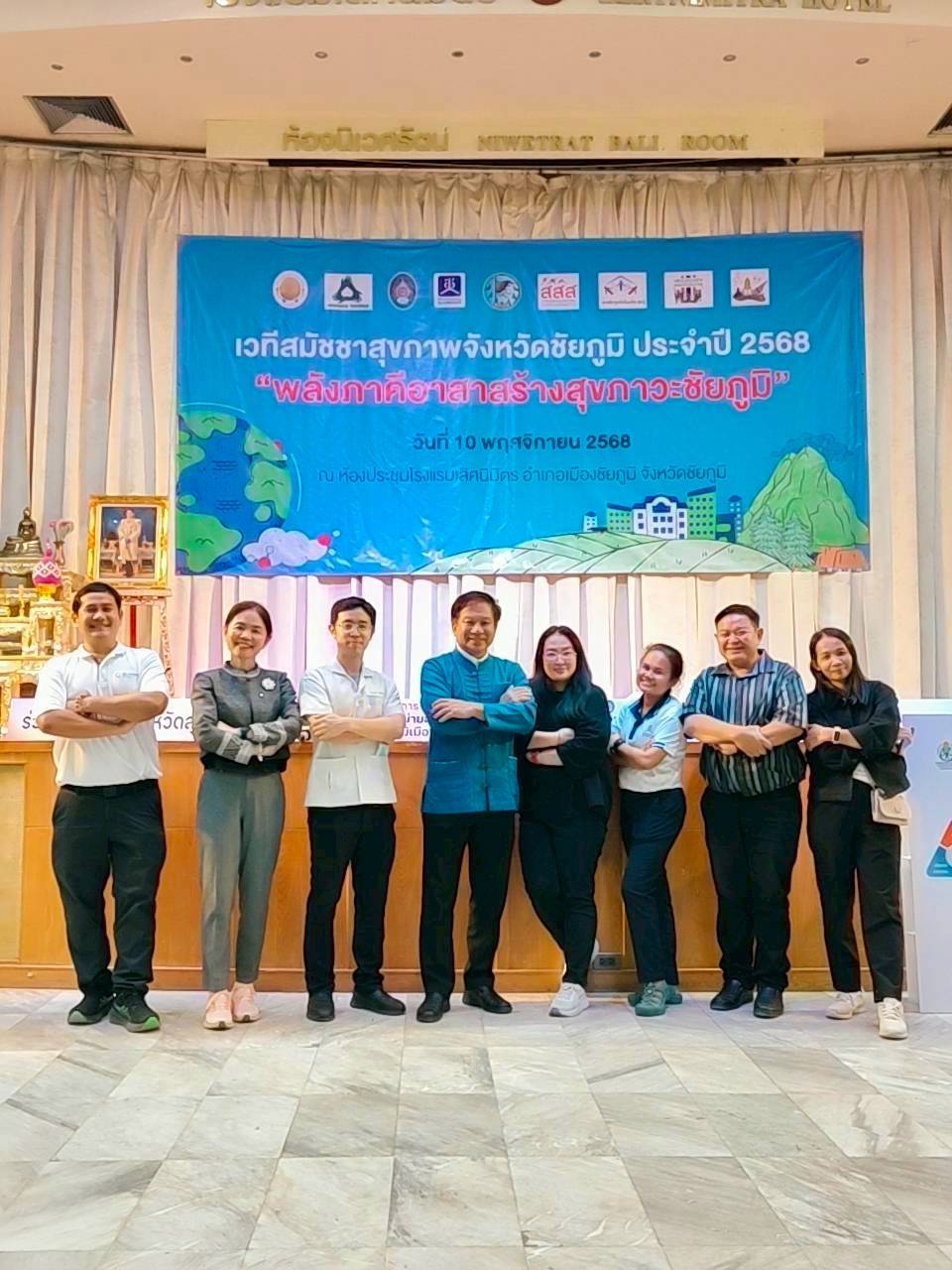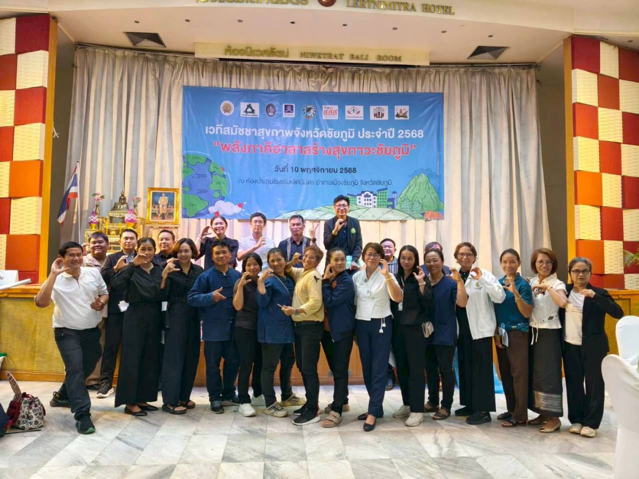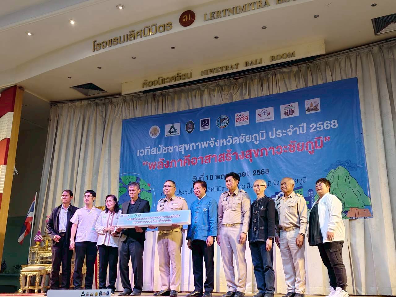 เมื่อวันที่ 10 พฤศจิกายน 2568 ณ ห้องประชุมโรงแรมเลิศนิมิตร อำเภอเมือง จังหวัดชัยภูมิ จัดงานสมัชชาสุขภาพจังหวัดชัยภูมิ ประจำปี 2568 ภายใต้ธีม “พลังภาคีอาสาสร้างสุขภาวะชัยภูมิ”