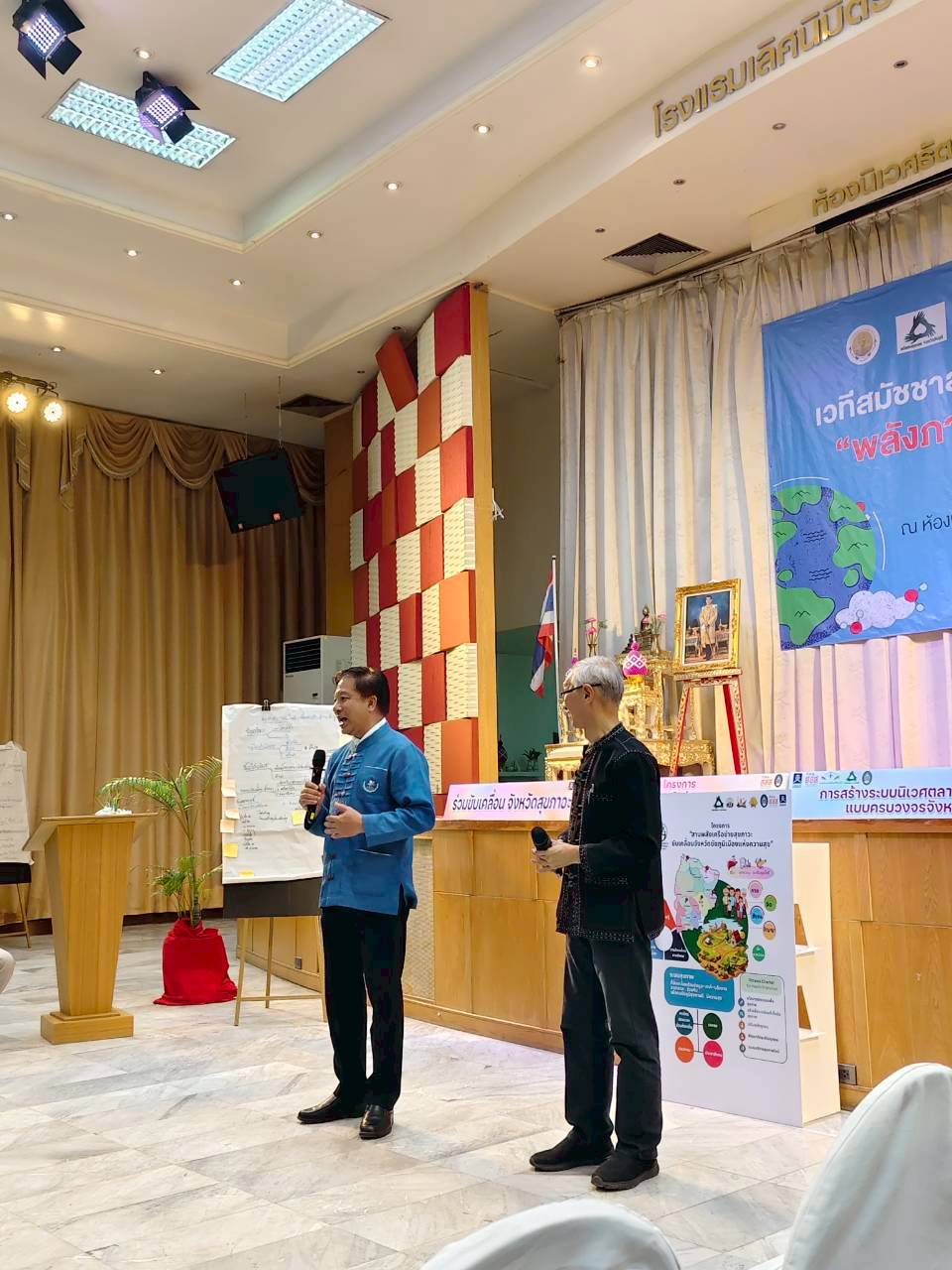 ผศ.ดร.ศักดิ์ชาย เพ็ชรตรา รองอธิการบดี มหาวิทยาลัยราชภัฏชัยภูมิ ฝ่ายกิจการสภา ประกันคุณภาพ การศึกษา และชุมชนสัมพันธ์ “ทุกคนเป็นนักพัฒนา เชื่อในพลังสามเหลี่ยมเขยื้อนภูเขาเป็นฐานคิดและยุทธศาสตร์ที่สำคัญ ต้องใช้ 3 พลังพร้อมกัน คือ พลังความรู้ พลังสังคม และพลังนโยบายรัฐ ในการทำสิ่งที่ยากๆ เมื่อทั้งสามด้านทำงานร่วมกัน มองประโยชน์และมองเป้าหมายร่วมกัน จะทำให้นโยบายเกิดพลังมากกว่าการทำงานฝ่ายใดฝ่ายหนึ่งเพียงลำพัง”