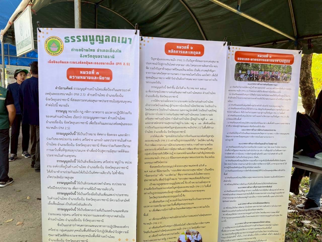 กิจกรรมดังกล่าวเป็นส่วนหนึ่งของการ ขับเคลื่อนนโยบายสาธารณะสู่การปฏิบัติจริงในระดับพื้นที่ ภายหลังจากองค์การบริหารส่วนตำบล หน่วยงานภาคีเครือข่าย ผู้นำชุมชน คณะกรรมการหมู่บ้าน และประชาชนในพื้นที่ตำบลบ้านไทย ได้ร่วมกันจัดกิจกรรมทอดผ้าป่าสามัคคี และประกาศใช้ “ธรรมนูญลดการเผา” ตำบลบ้านไทย อำเภอเขื่องใน จังหวัดอุบลราชธานี เมื่อวันที่ 9 ธันวาคม 2568