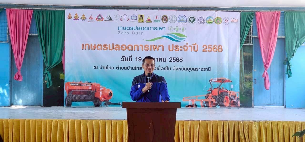 เมื่อวันที่ 19 ธันวาคม พ.ศ. 2568 ณ โรงเรียนบ้านไทยวิทยาคม ตำบลบ้านไทย อำเภอเขื่องใน จังหวัดอุบลราชธานี หน่วยงานภาครัฐ ภาคเอกชน สถาบันการศึกษา และภาคประชาชน ร่วมกับอำเภอเขื่องใน จังหวัดอุบลราชธานี จัดกิจกรรม รณรงค์เกษตรปลอดการเผา เพื่อร่วมกันลดและป้องกันปัญหาฝุ่นละอองขนาดเล็ก (PM 2.5) ซึ่งส่งผลกระทบโดยตรงต่อสุขภาพอนามัยของประชาชน เศรษฐกิจในระดับครัวเรือนและชุมชน ตลอดจนระบบนิเวศและภาคการเกษตรในพื้นที่