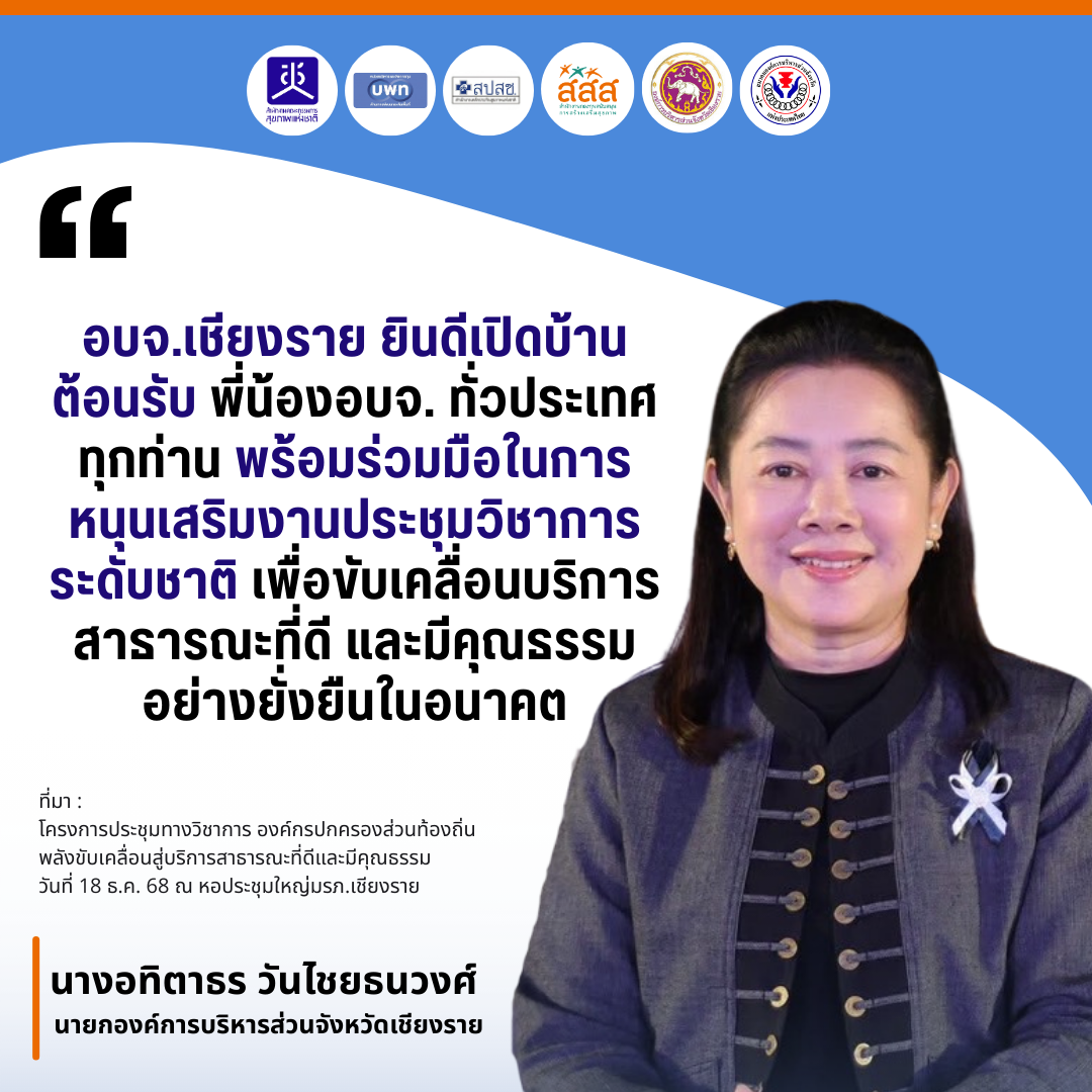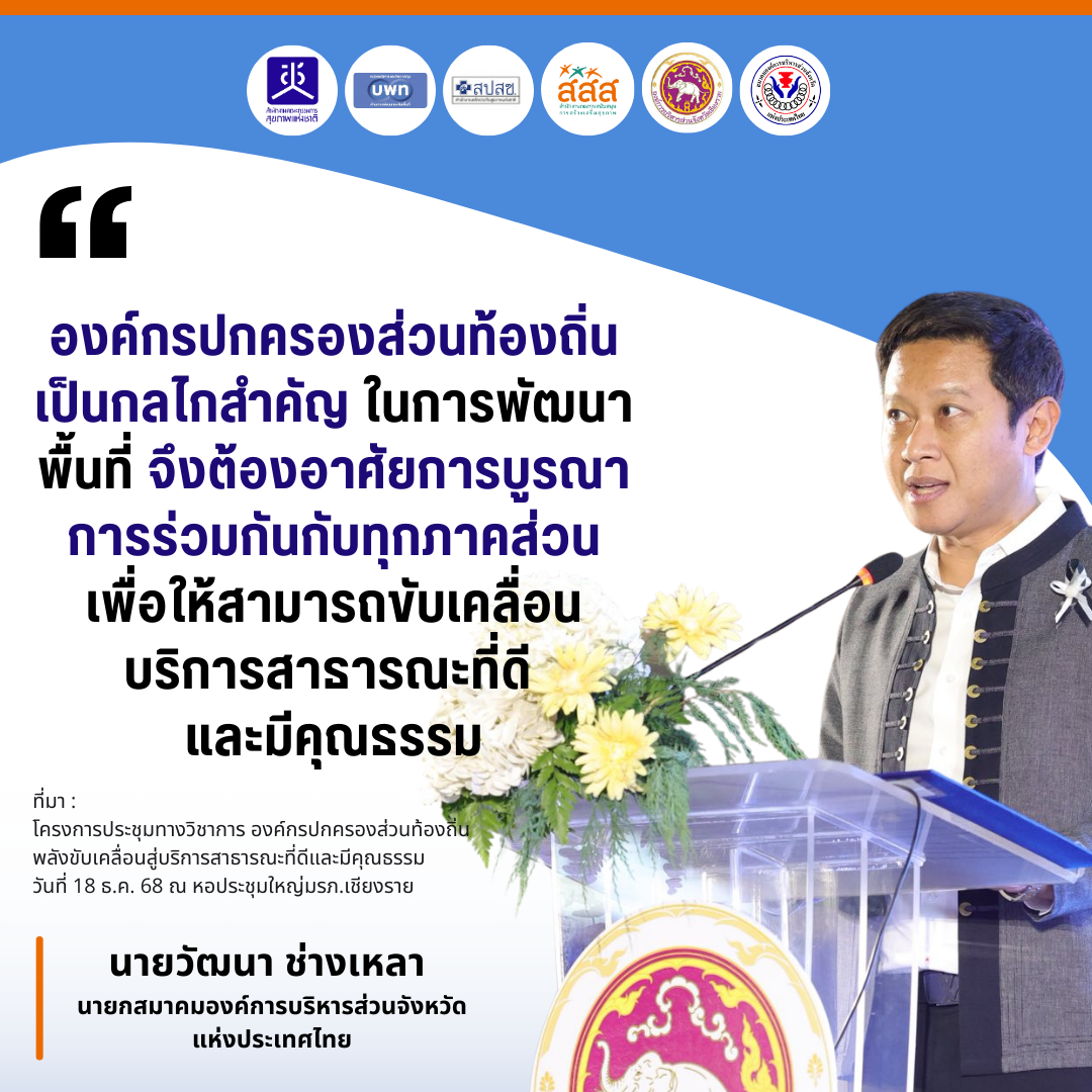 #อบจเชียงราย #สมาคมอบจแห่งประเทศไทย #กระจายอำนาจ #บริการสาธารณะ #พัฒนาท้องถิ่น #ประชุมวิชาการอบจ. #สช. #ศสท. #สปสช. #สสส. #บพท #อบจ.ลำปาง #ระบบสุขภาพท้องถิ่น #Telemedicine