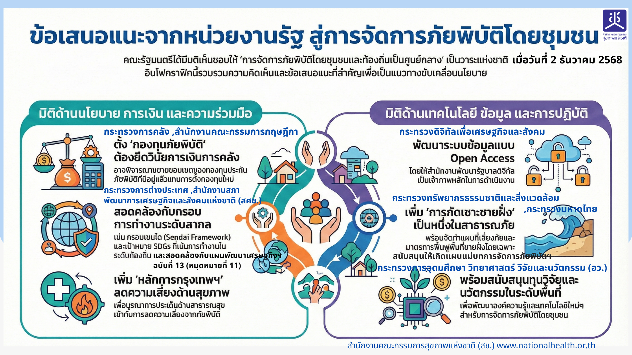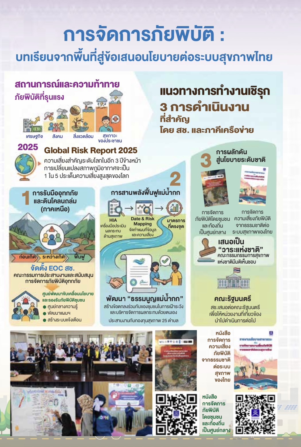 ⬅️ ข้อเสนอเชิงนโยบาย การขับเคลื่อนนโยบายสาธารณะเพื่อการจัดการภัยพิบัติโดยขุมชนและท้องถิ่นเป็นศูนย์กลาง เล่มนี้มีข้อเสนอที่ครอบคลุมมากขึ้น โดย คสช.และ ครม.เห็นชอบเป็นวาระแห่งชาติ