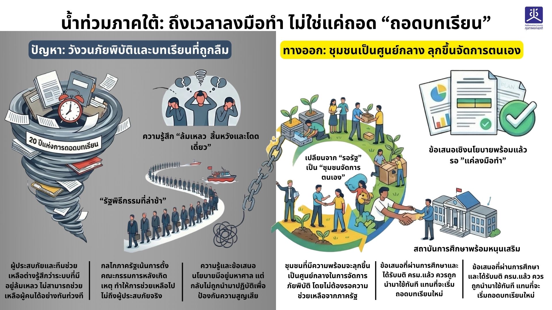 ข้อเสนอเชิงนโยบาย การขับเคลื่อนนโยบายสาธารณะเพื่อการจัดการภัยพิบัติโดยขุมชนและท้องถิ่นเป็นศูนย์กลาง เล่มนี้มีข้อเสนอที่ครอบคลุมมากขึ้น โดย คสช.และ ครม.เห็นชอบเป็นวาระแห่งชาติ