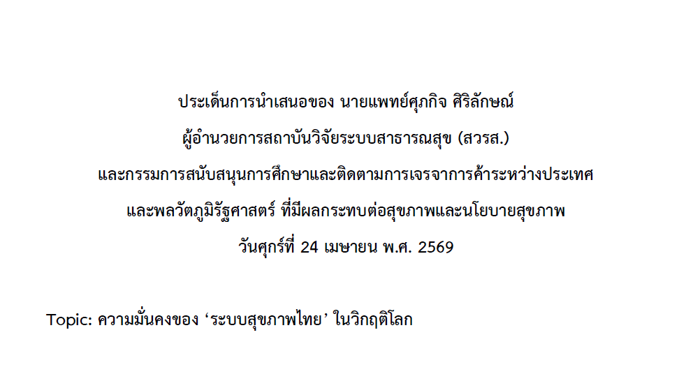 นโยบายความมั่นคงด้านพลังงาน-อาหาร-สุขภาพ : โอกาสและทางรอดของไทยในวิกฤติโลก