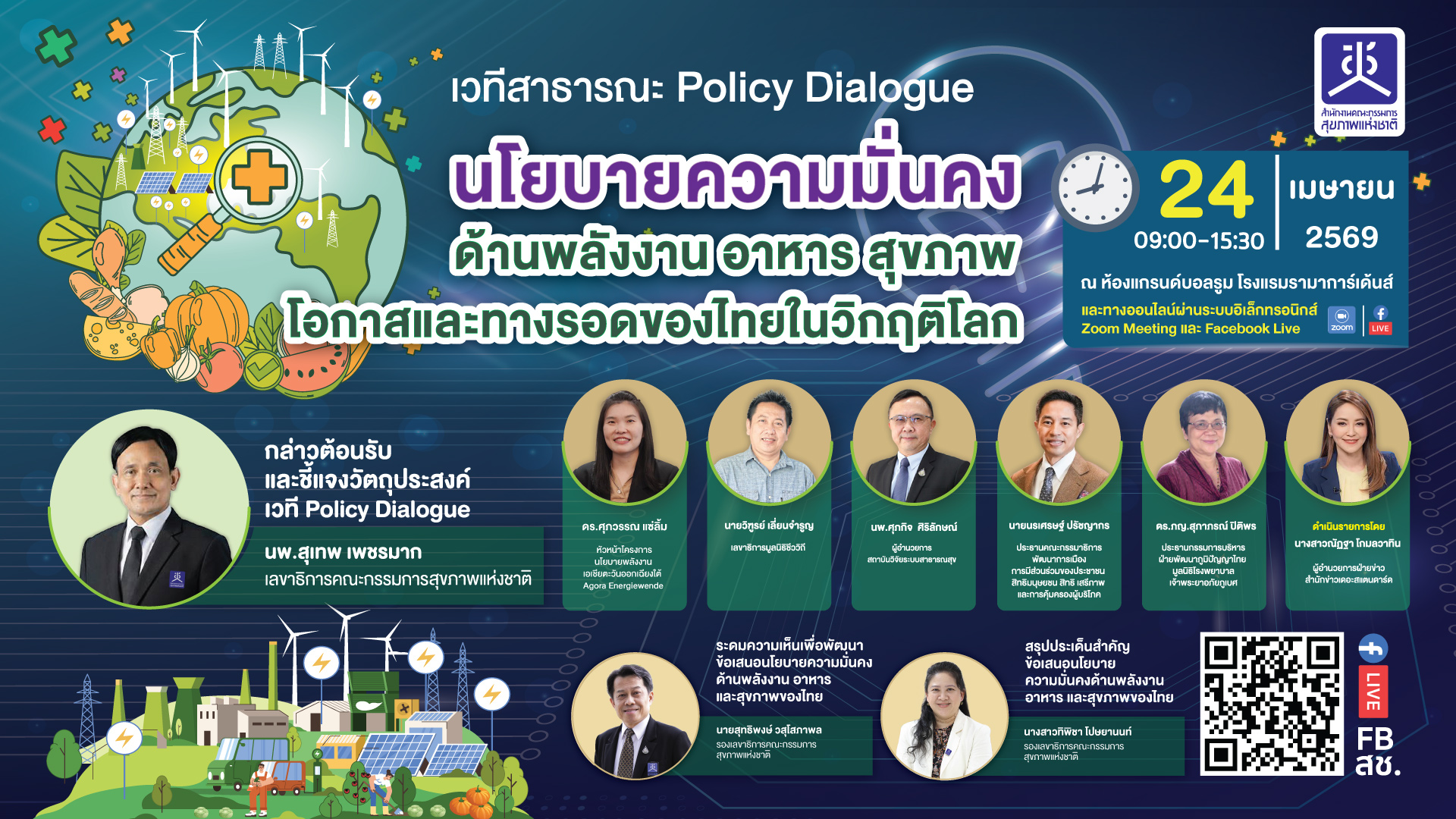 เวทีสาธารณะ Policy Dialogue นโยบายความมั่นคงด้านพลังงาน อาหาร สุขภาพ โอกาสและทางรอดของประเทศไทยในวิกฤติโลก