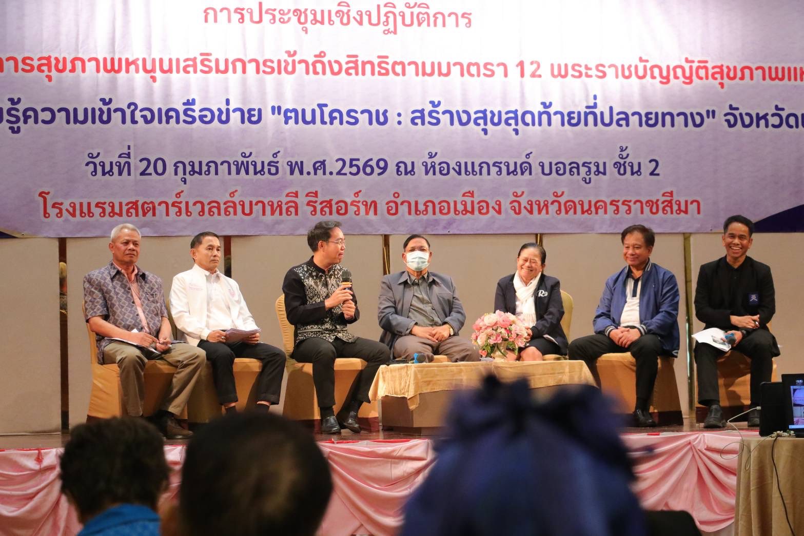 เมื่อวันที่ 20 กุมภาพันธ์ 2569 ที่โรงแรมสตาร์เวลล์บาหลี รีสอร์ท อำเภอเมือง จังหวัดนครราชสีมา จัดประชุมเชิงปฏิบัติการ “การพัฒนาระบบบริการสุขภาพหนุนเสริมการเข้าถึงสิทธิตามมาตรา 12 พระราชบัญญัติสุขภาพแห่งชาติ 2550”โดยการสร้างความรู้ความเข้าใจเครือข่าย “ฅนโคราช : สร้างสุขสุดท้ายที่ปลายทาง” โดยเน้นการขับเคลื่อนเชิงพื้นที่ นำร่อง 8 อำเภอ จากทั้งหมด 32 อำเภอ ได้แก่ อำเภอเมือง จักราช โชคชัย พิมาย พระทองคำ โนนไทย ปากช่อง และประทาย มีบุคลากรสาธารณสุขและอาสาสมัครเข้าร่วมกว่า 200 คน เพื่อสร้างความเข้าใจให้ประชาชนและบุคลากรสาธารณสุข เข้าถึงการทำ Living Will ผ่านระบบอิเล็กทรอนิกส์ได้อย่างถูกต้อง