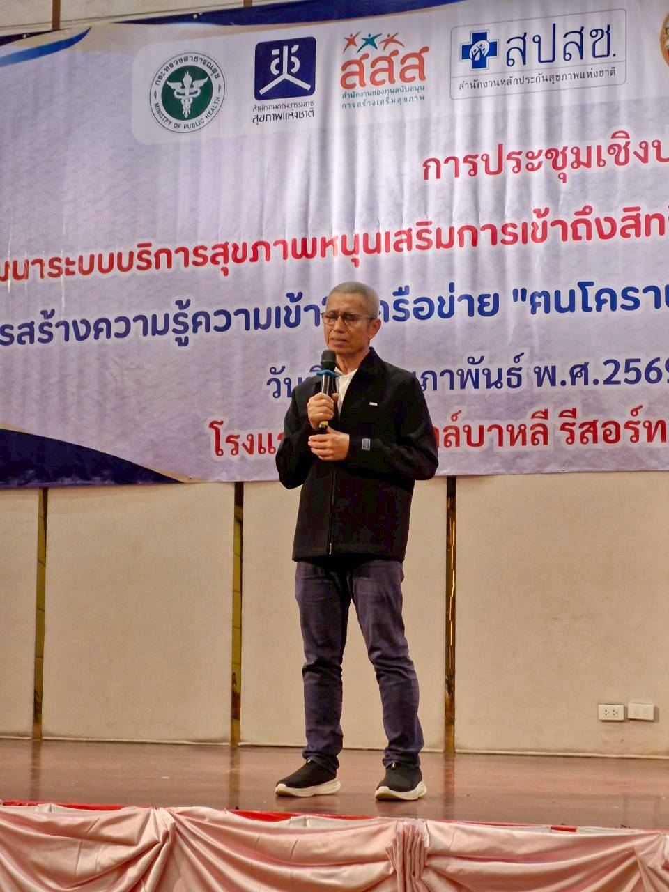 ช่วงเวทีเสวนาในหัวข้อ “หนุนเสริมการเข้าถึงสิทธิการรักษาตามมาตรา 12 พ.ร.บ.สุขภาพแห่งชาติ 2550: พัฒนาระบบบริการสุขภาพ สร้างสุขสุดท้ายที่ปลายทาง” ซึ่งได้รับเกียรติจากผู้แทนระดับนโยบายและผู้เชี่ยวชาญหลายภาคส่วนร่วมแลกเปลี่ยน อาทิ นายแพทย์วรัญญู สัตยวงศ์ทิพย์ รองเลขาธิการคณะกรรมการสุขภาพแห่งชาติ